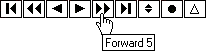 The con5forwardtip command allows you to set a tooltip for the controlpanel's Forward 5 button. By default, Palview does not provide any tooltip. In the example below, con5forwardtip was set to "Forward 5".